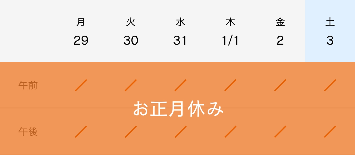 | 月・火・木・金 | 9:00 – 12:30 14:00 – 17:30 |